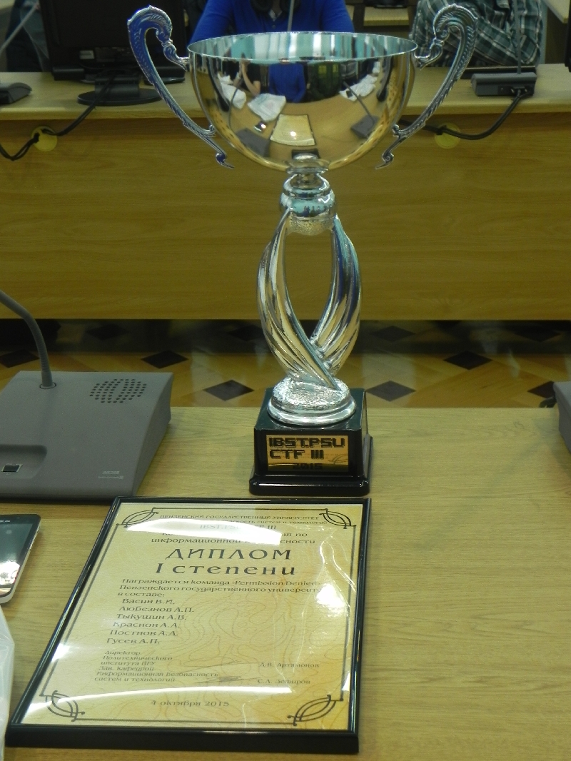 Напомним, отборочный этап соревнований проходил 24–26 апреля 2015 г. в режиме онлайн. К участию в официальном зачете были приглашены студенческие команды из высших и средних профессиональных учебных заведений Пензенской области. (Отметим, что на областном уровне соревнования проводились впервые). В отборочном этапе принимала участие 21 команда. До финала дошли 5 команд вузов Пензы. Также организаторами была приглашена одна «гостевая» команда, которая играла вне общего зачета в очном финале IBST.PSU CTF III. Финальный тур состоялся 4 октября.