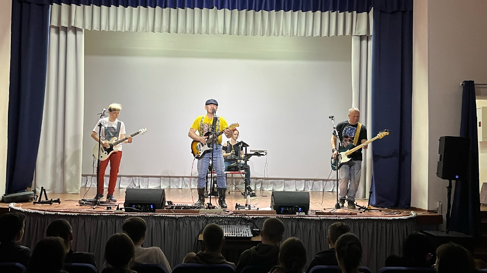 После профориентационной работы с выпускниками, мероприятие продолжилось в Доме культуры юго-западного микрорайона, где Александр Евгеньевич вместе со своей музыкальной группой «Вне координат» представил песни собственного сочинения. Баллады, блюзовые и рок-композиции с философскими текстами, а порой и с долей иронии или оттенком грусти, переносили зрителей туда, где профессор и путешественник Зверовщиков побывал сам. Концерт получился очень насыщенным, прошел на одном дыхании.