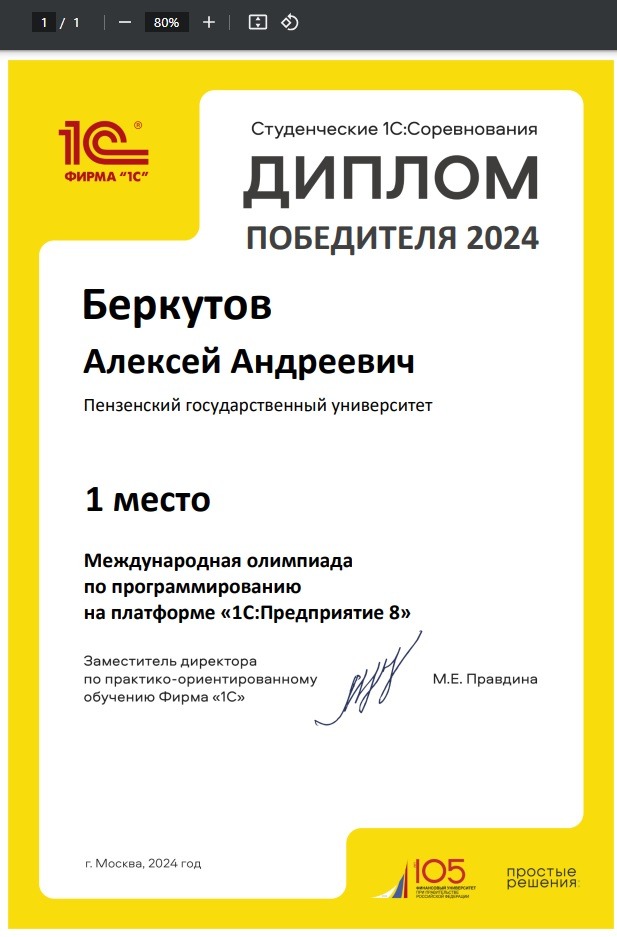 Студент Политехнического института Пензенского государственного университета Алексей Беркутов стал призером Международной олимпиады по программированию на платформе «1С:Предприятие».