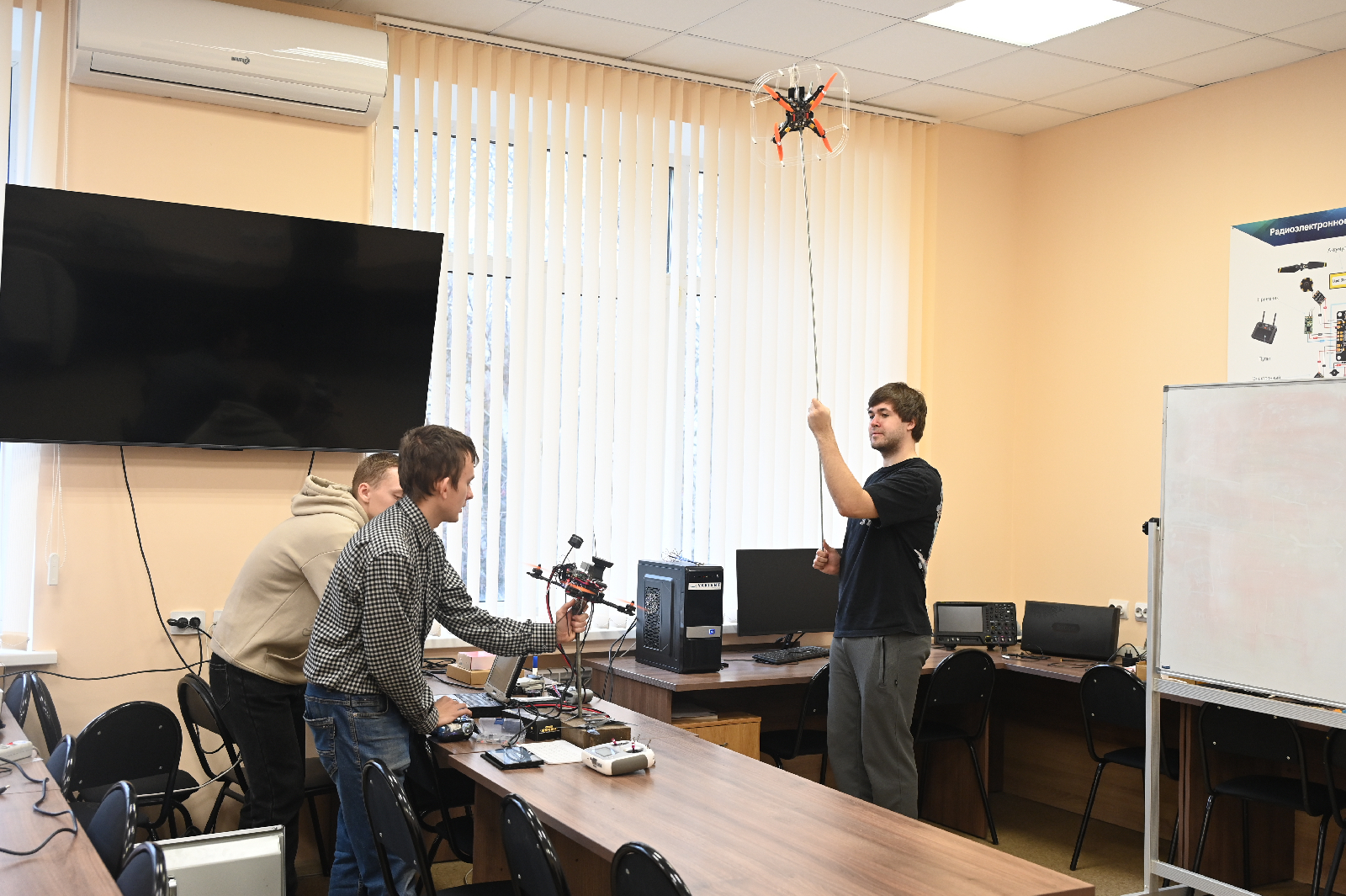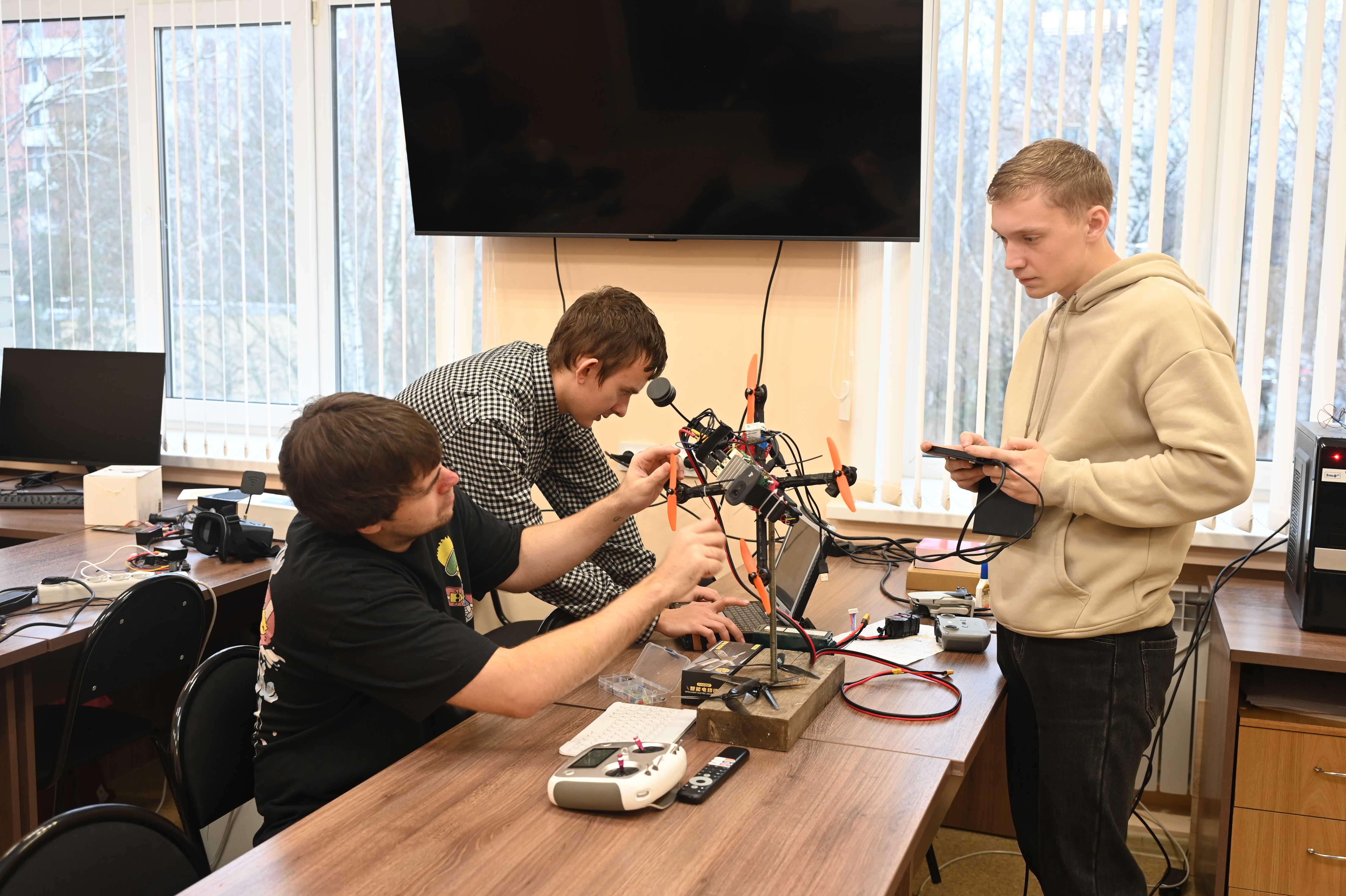Для учебно-практических задач закуплено и установлено профессиональное оборудование: различные БПЛА, высокотехнологичное измерительное оборудование, отладочные платы, одноплатные компьютеры и другое.